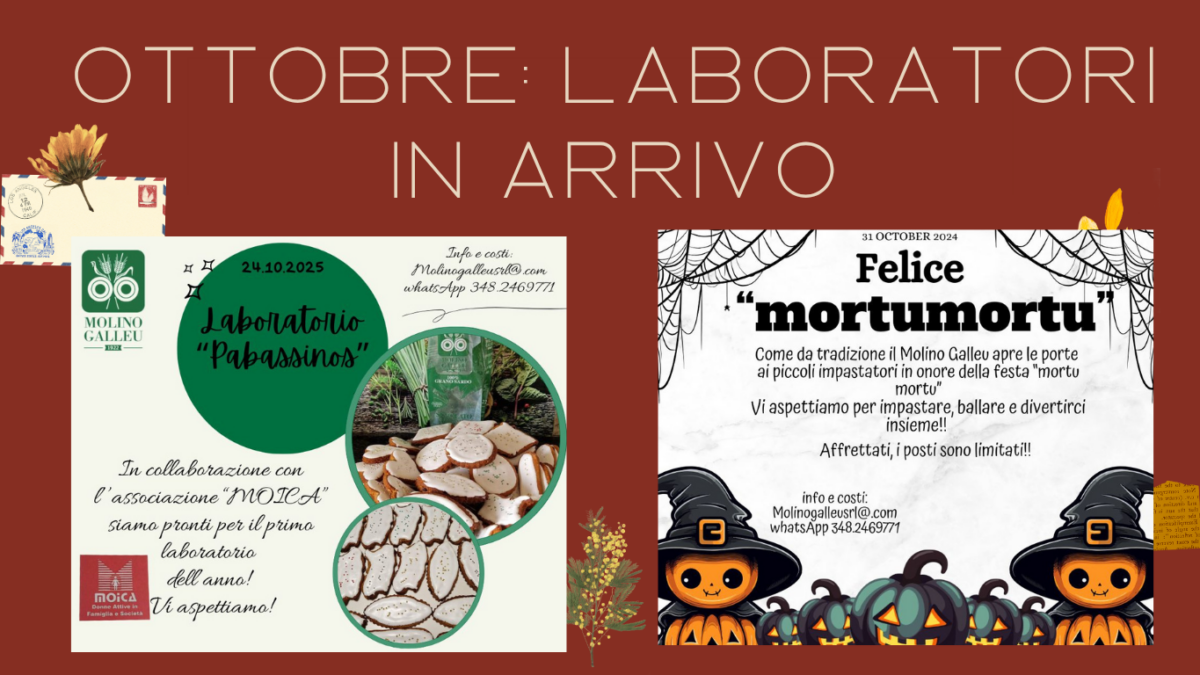 L’autunno è arrivato e con lui tornano i laboratori di cucina del Molino Galleu! Due appuntamenti imperdibili per chi ama mettere le mani in pasta e scoprire da vicino la magia delle nostre farine di grano duro 100% sardo.